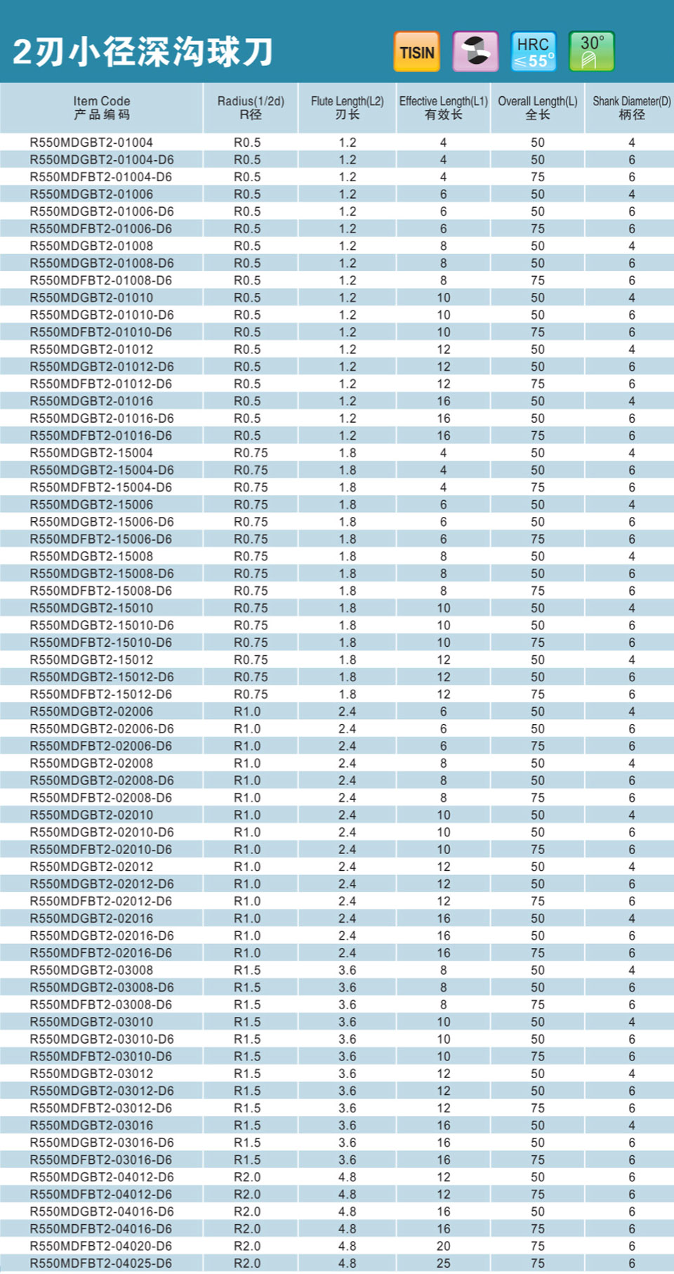2刃微小徑深溝圓鼻刀